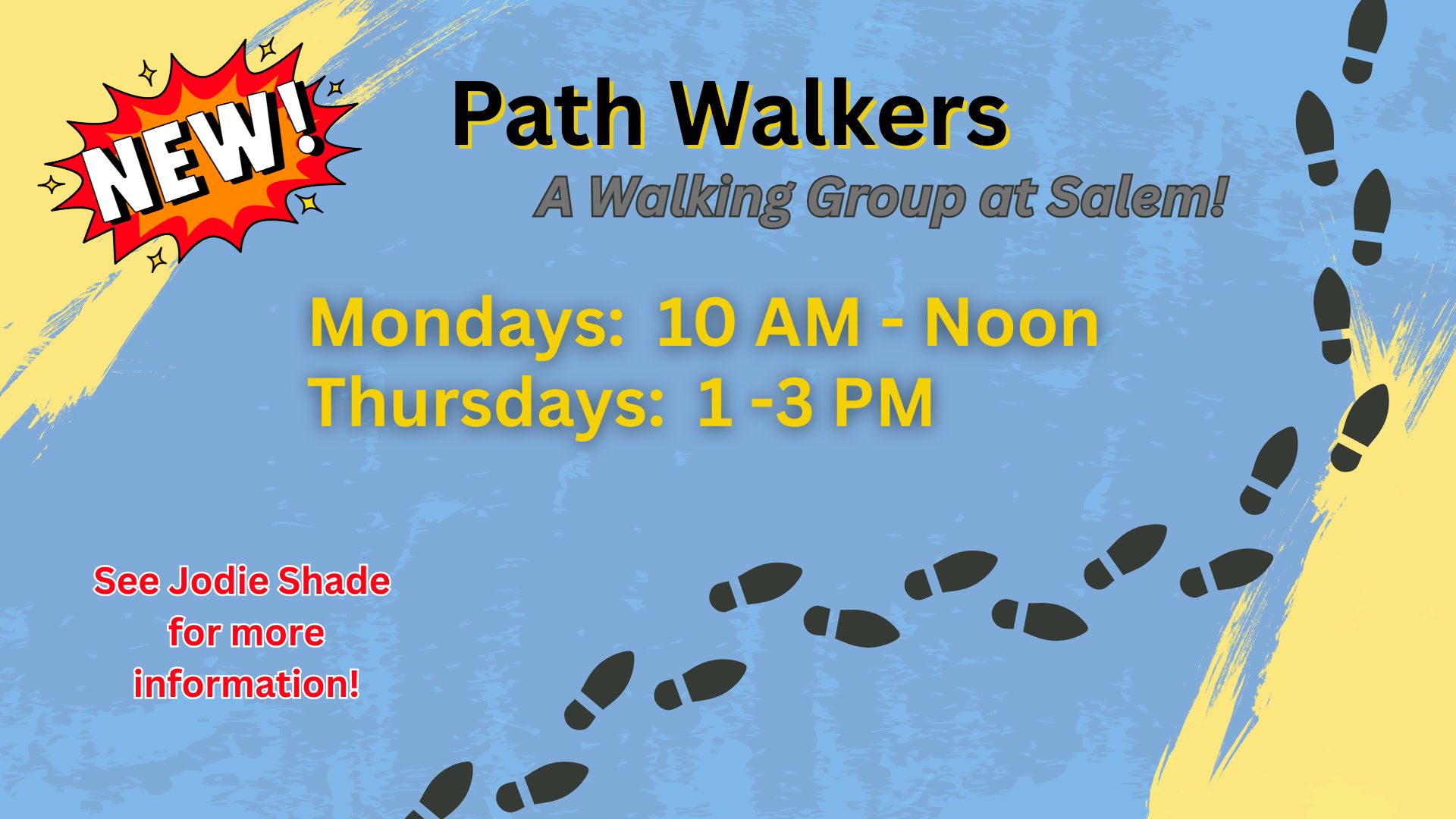 The Path Walkers group meets on Mondays from 10 AM to noon and Thursdays 1-3 PM. All are invited to join, please see Jodie Shade if you have any questions!